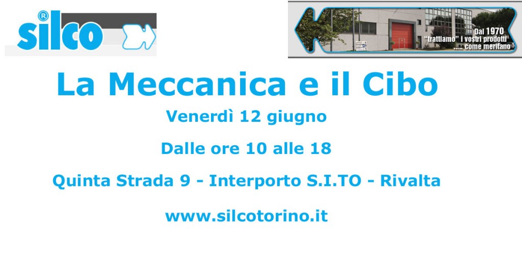Appuntamento dunque, venerdì 12 giugno dalle 10 alle 18, alla Silco (Quinta Strada n. 9 Interporto di Rivalta) per Meccanica e Cibo, seconda edizione. Info 011.3972930, www.silcotorino.it.